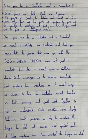 However, in this topic we learnt that this is untrue and that we as Catholics are encouraged by the church to be scientists and to explore the world that God has gifted us.