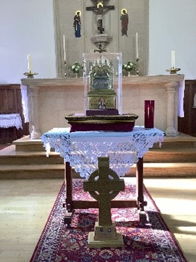 The relics were at the front of the altar for us all to see and pray to. It felt a very special occasion.