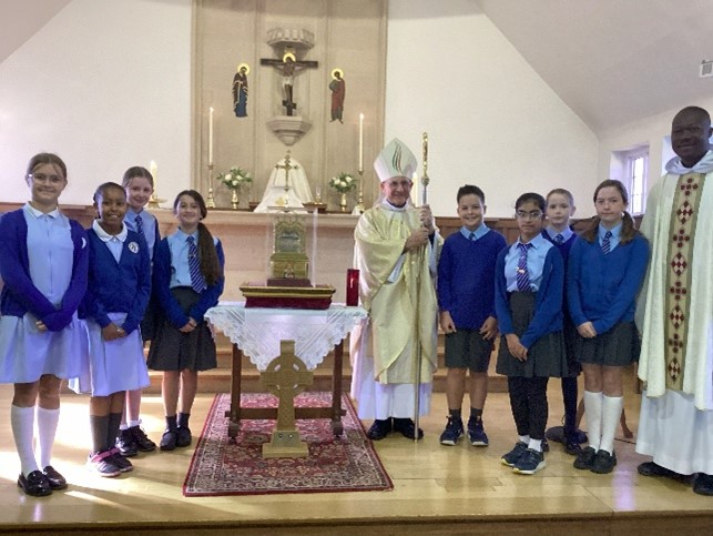Bishop Paul explained that today was the feast of the archangels and that their names were Gabriel, Michael and Raphael. He asked us what we knew about Gabriel and Jack answered that this angel told Mary that she was going to have a son called Jesus. We learnt that all their names end in ‘el’ which means God. This shows us that they were close to God.